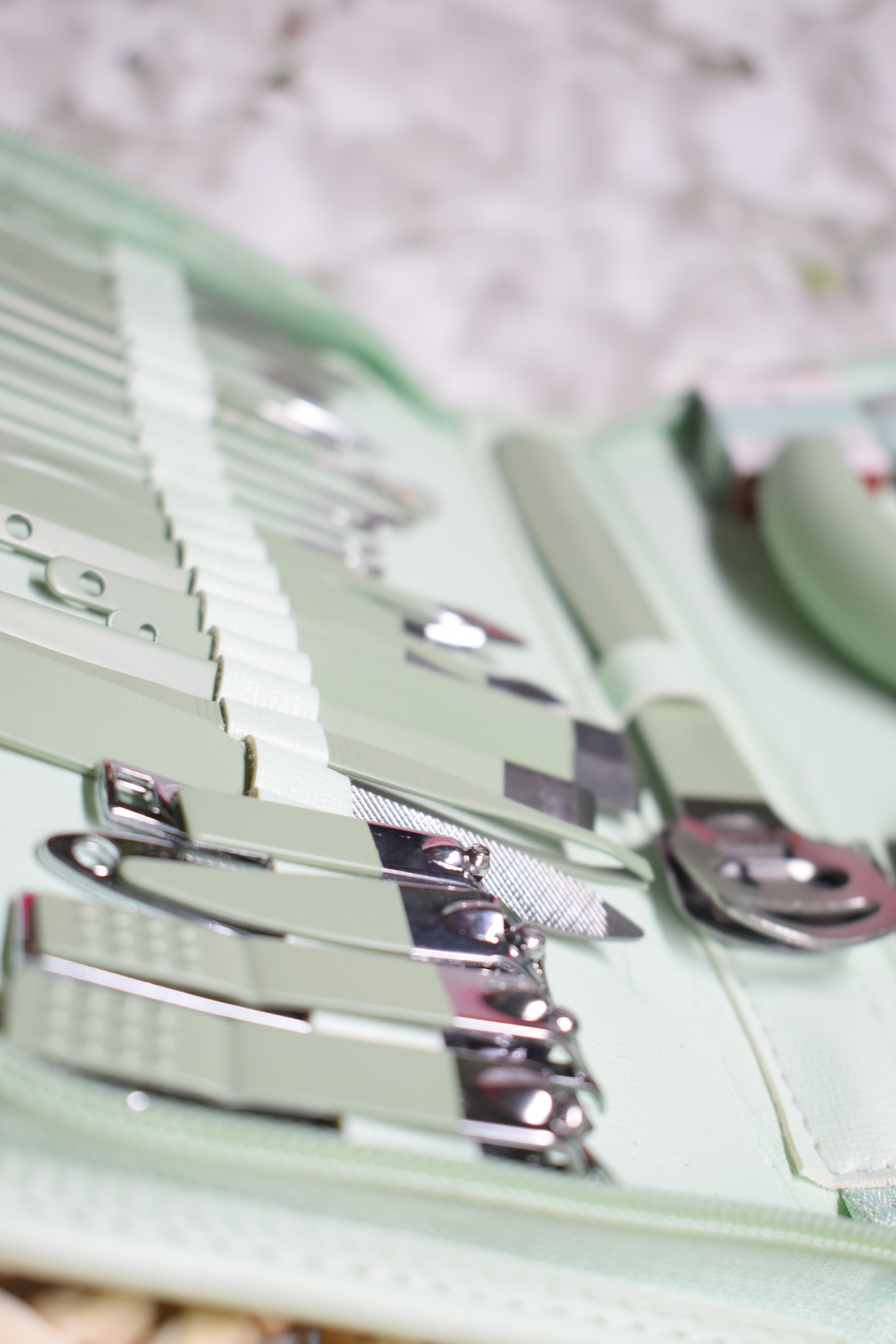 👜 Incluye: herramientas de acero inoxidable, cortaúñas, alicates, empujadores, limas, pinzas y más, perfectamente organizadas en un estuche elegante y resistente que te acompañará a donde vayas.Â